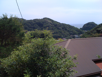 (遠くに海、山、あとはウチの屋根)